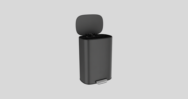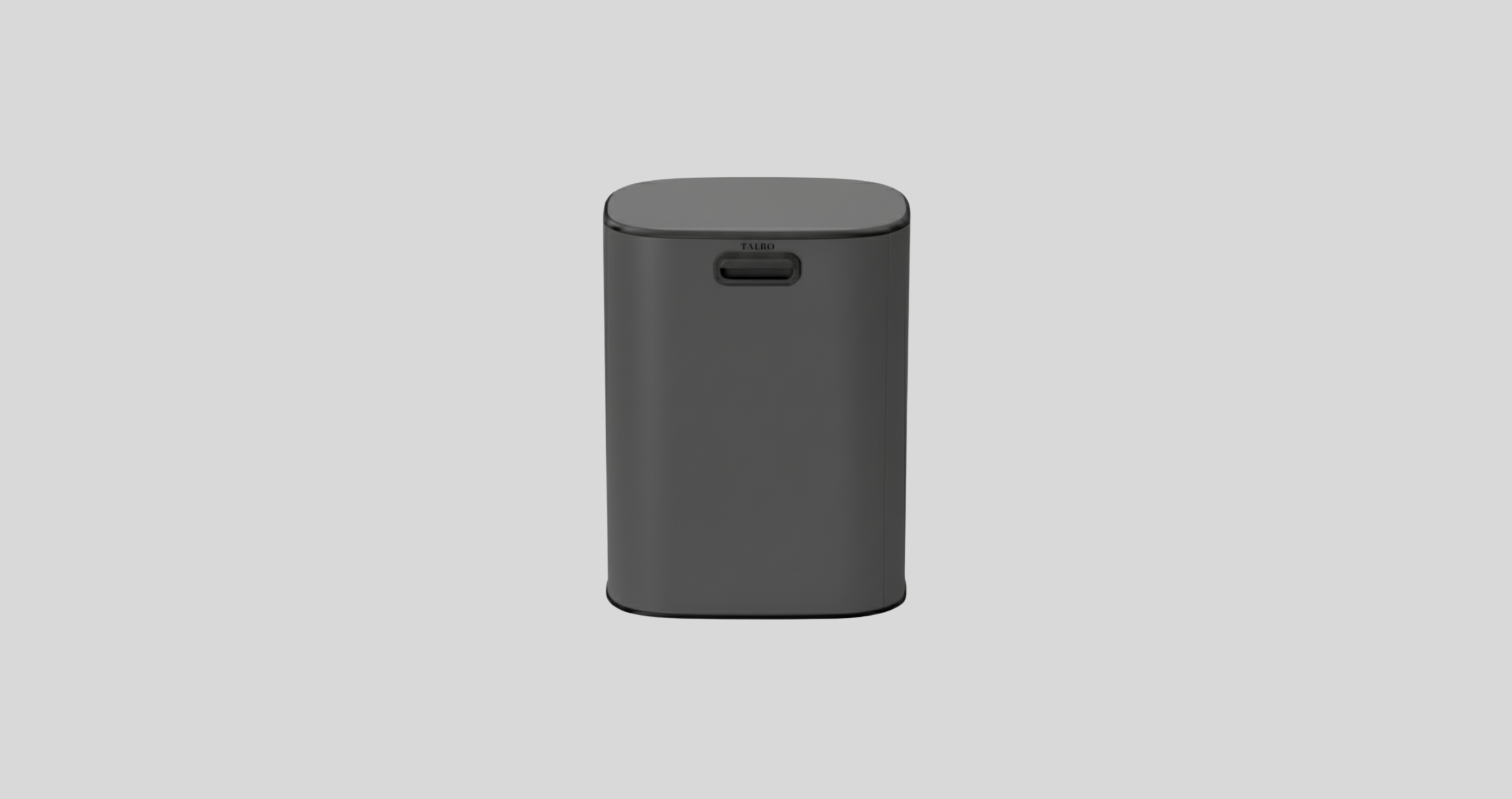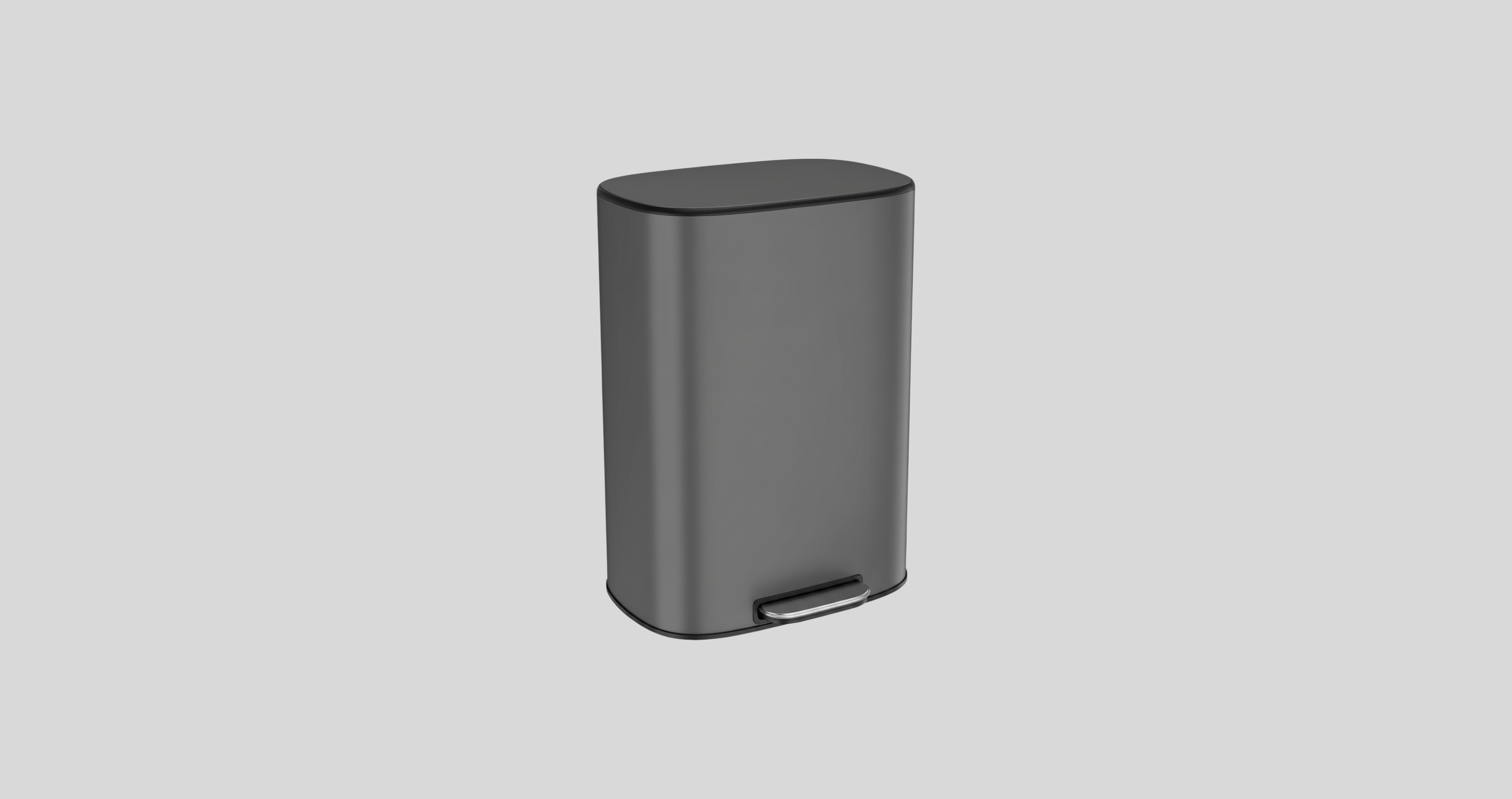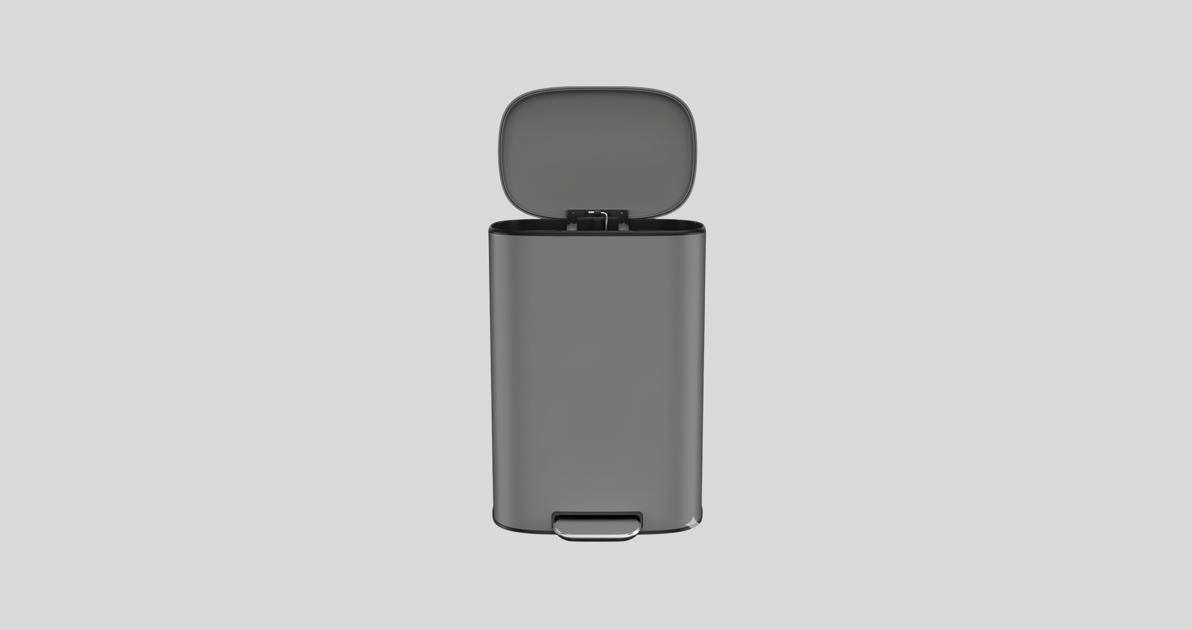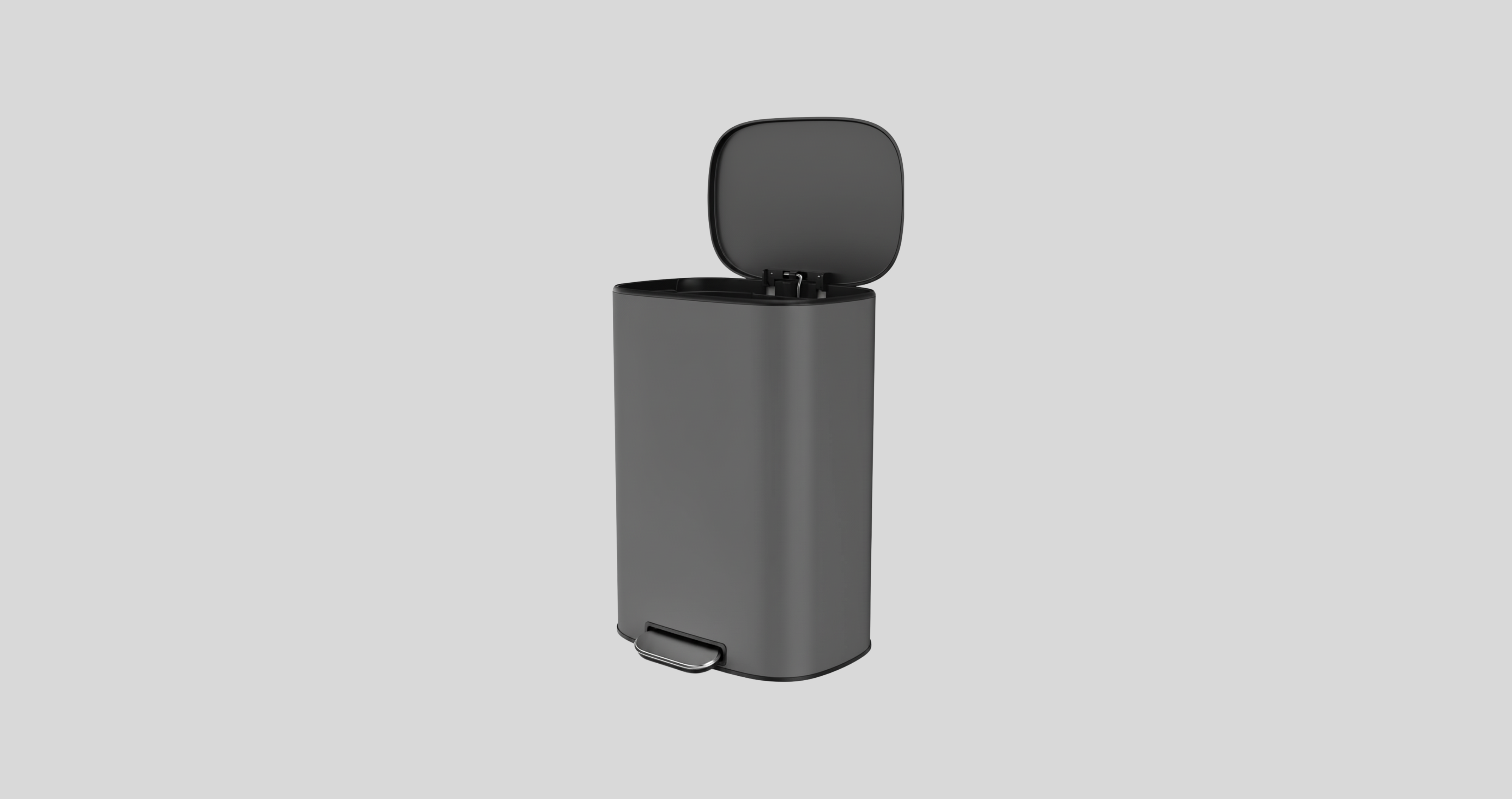 פח אשפה מעוצב בנפח 60 ליטר בצבע אפור, המשלב נוחות שימוש עם עיצוב יוקרתי ונקי