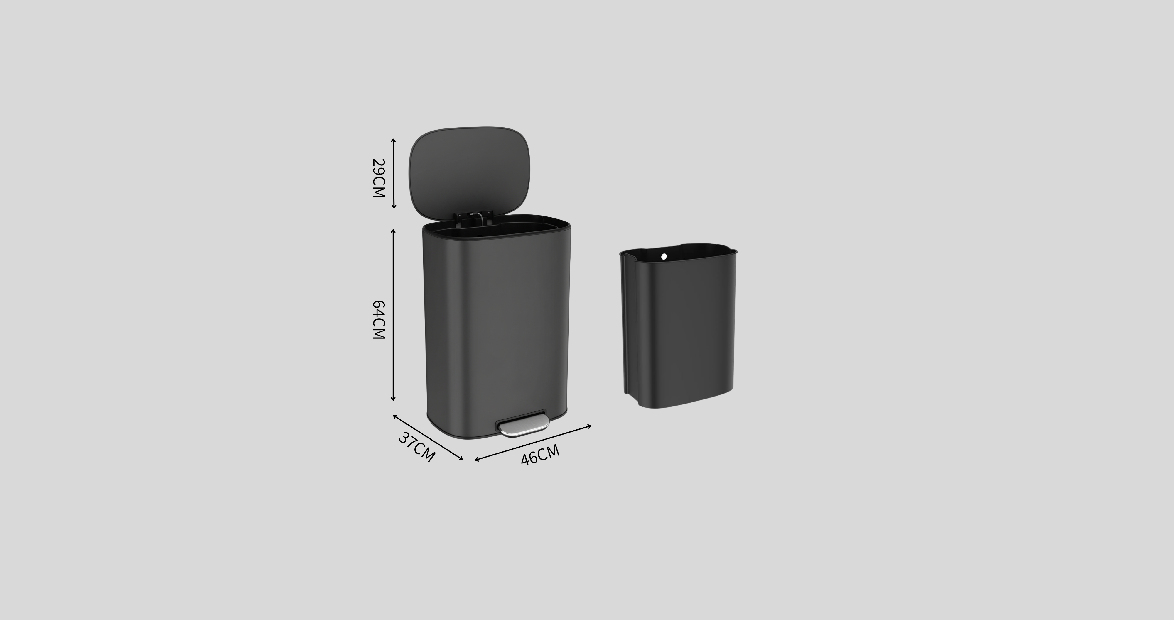פח אשפה מעוצב למטבח 60 ליטר דוושה עם פח פנימי נשלף צבע אפור דגם CLARO